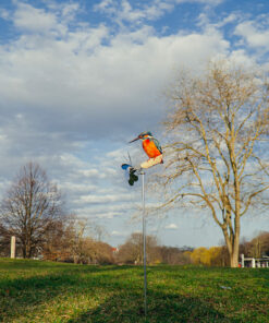 The shiny stainless steel propeller turns happily under the bird’s beak, while it turns on its own axis on the ball-bearing pivot bearing. Everything on the high-quality aluminum pole included in the scope of delivery. Within a few minutes, the wind chime can be completely assembled and set up from the few individual parts using the illustrated instructions.