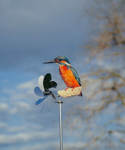 In addition to titmice, blackbirds and sparrows, you can also enjoy the special kingfisher by setting it up as a small wind spinner on your balcony or in the garden. Have fun with this special garden decoration.