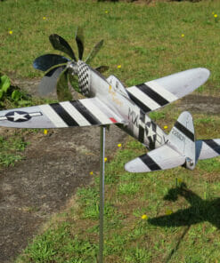 The P-47 Thunderbolt was a mighty warbird. It was the heaviest single-engine fighter aircraft of World War II. Powered by a Pratt & Whitney twin-row radial engine with turbo charger, however, the P-47 was anything but cumbersome. You’ll find her just as impressive as a windspinner by maxFlite. We carefully transferred every detail of Captain Benjamin Mayo’s “No Guts No Glory” machine from 1944 to our model. Do you have the guts to order a maxFlite P-47 Thunderbolt?