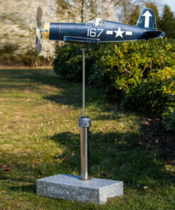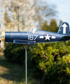 Heute ist die Corsair als Star auf Airshows bekannt. Holen auch Sie sich ein Stück Luftfahrtgeschichte mit der markanten Corsair als Dekowindrad in den Garten. Die Bewunderung von Freunden und Nachbarn ist Ihnen gewiss.