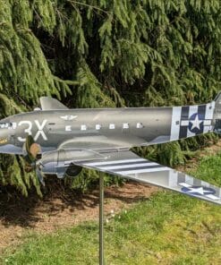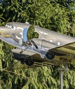Als Unternehmen, das seit vielen Jahren im Bereich Gartendekoration tätig ist, verstehen wir die Bedürfnisse und Wünsche unserer Kunden. Wir bieten die C-47 “That’s All Brother” als Windspiel in einer Ausführung an, die das Flugzeug in seiner Originalbemalung zeigt.